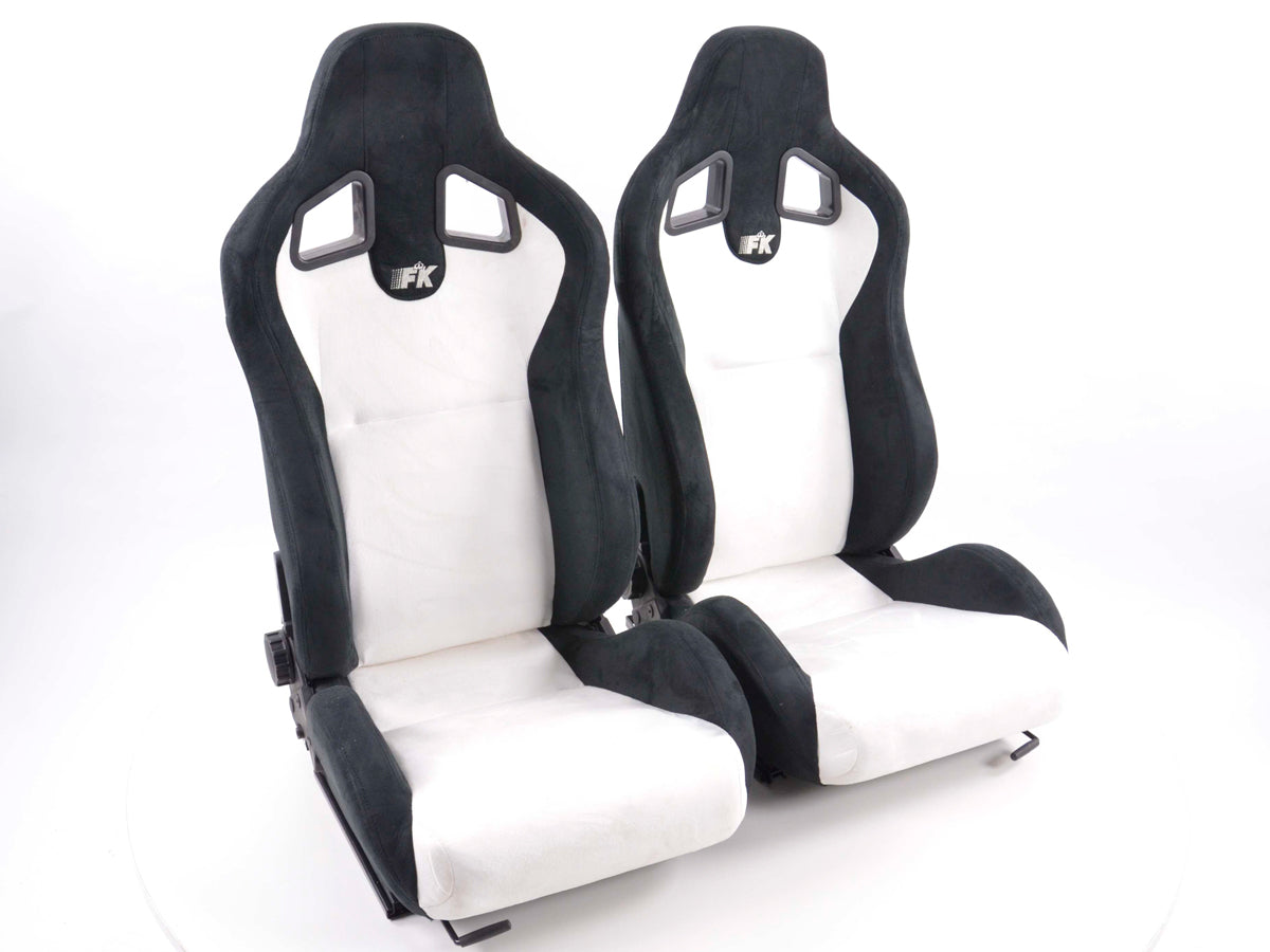 FK Sportsitze Auto Halbschalensitze Set Columbus Kunstleder weiß/schwarz mit Laufschienen